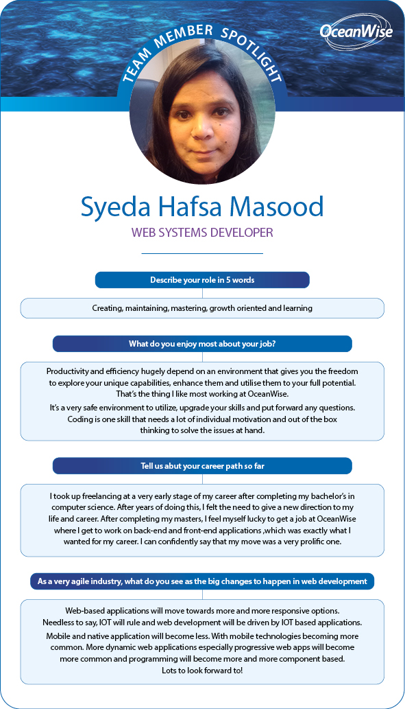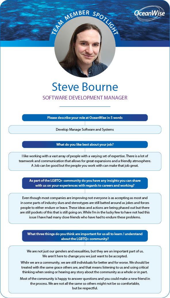 “It has been very enjoyable being part of the OceanWise team, largely due to their collective welcoming attitude, genuine interest in people’s ideas, and willingness to action them.” (Field Engineer)