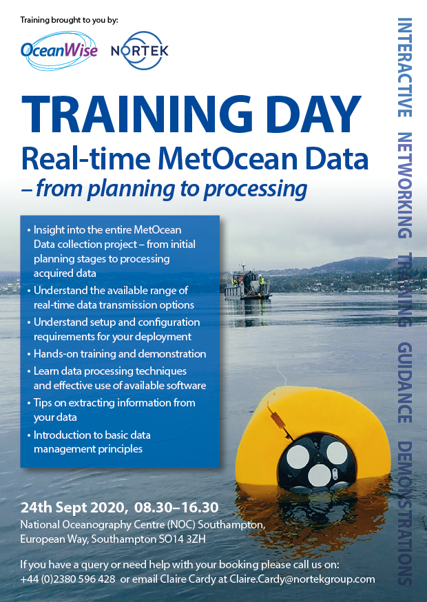OceanWise will be hosting a joint training day with Nortek on the 24th September 2020 at the NOC in Southampton.
